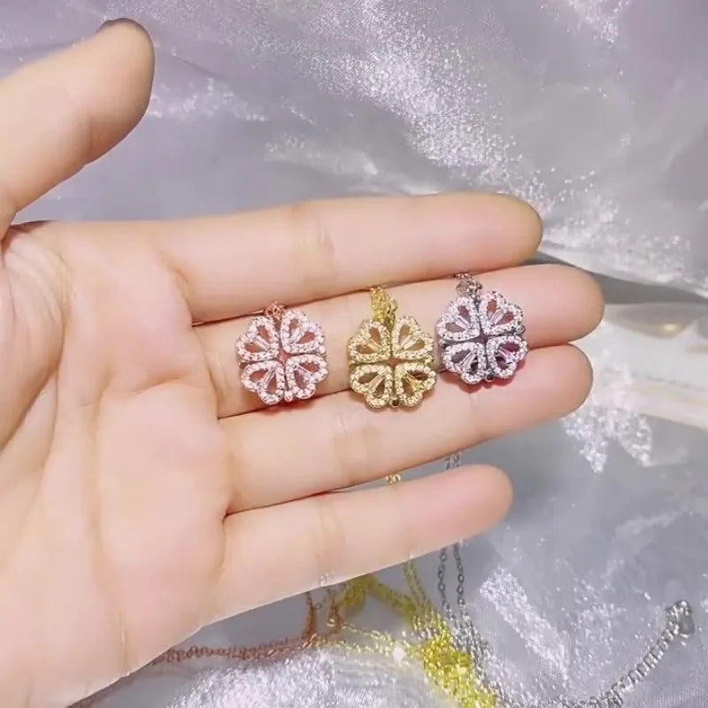 Each heart shape forms a stunning four-leaf clover design, making this necklace both meaningful and visually captivating.